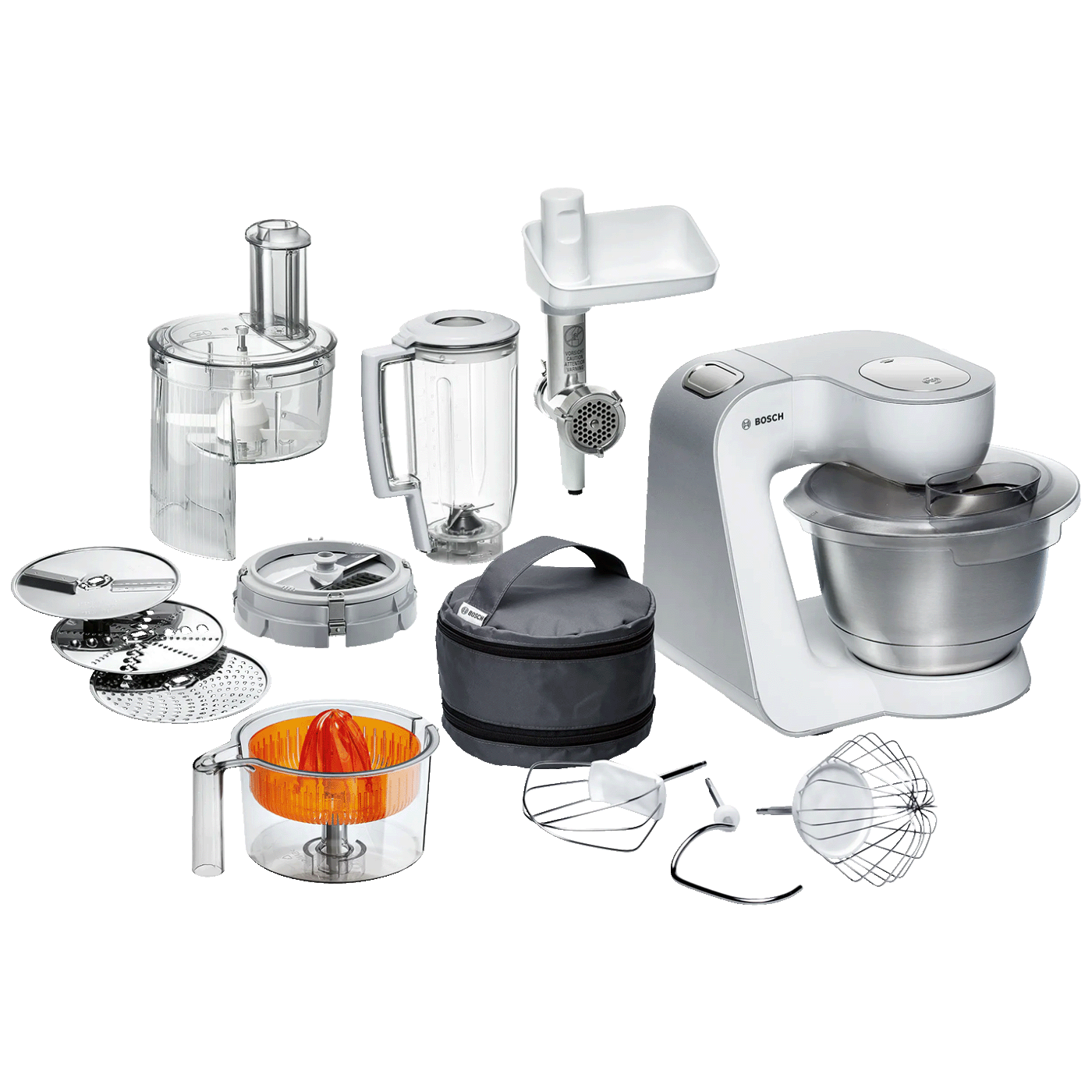 BOSCH kuhinjski aparat MUM54251 je dostupan u elegantnoj bijeloj i srebrnoj boji, što će se savršeno uklopiti u svaki stil uređenja kuhinje. Sa moćnim motorom snage 900W, ovaj kuhinjski aparat ima snagu da se izbori sa svim zahtjevnim poslovima u kuhinji.